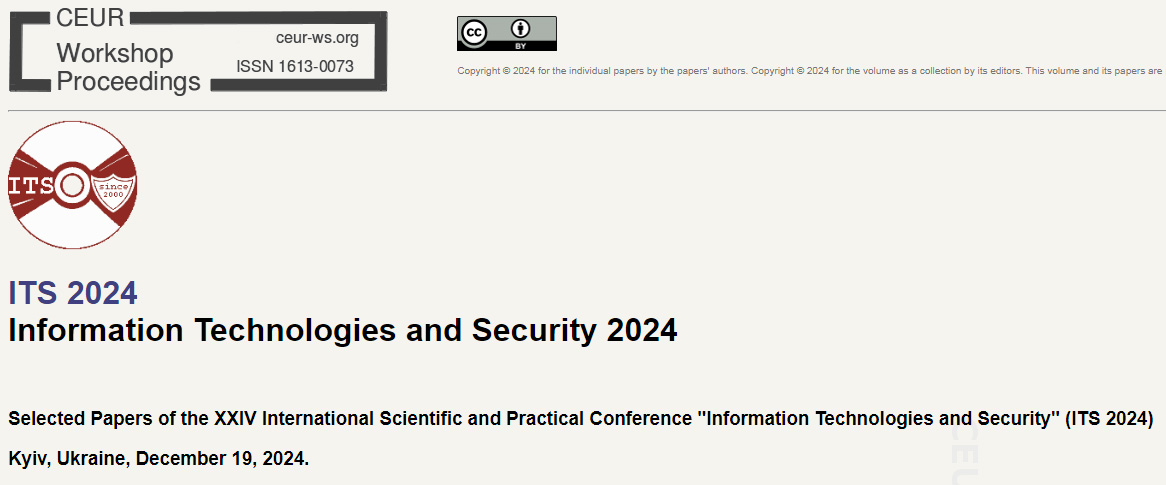Selected Papers of the XXIV International Scientific and Practical Conference "Information Technologies and Security" (ITS 2024) Kyiv, Ukraine, December 19, 2024. CEUR Workshop Proceedings (ceur-ws.org). - Vol-4068. - pp. 27-42. ISSN 1613-0073. [http://ceur-ws.org/Vol-4068/paper3.pdf]